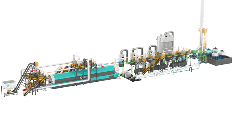 廢舊輪胎、塑料通過(guò)熱解產(chǎn)出燃料油、炭黑和廢鋼絲等,提供3-35噸/天處理范圍內(nèi)的多種規(guī)格設(shè)備,有撬裝式、間歇式、全連續(xù)煉油設(shè)備等多種工藝可供選擇。